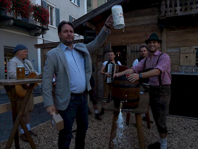 Brig-Glis’ Vizepräsident Patrick Amoos zapfte am frühen Mittwochabend das erste Bierfass an. Er betonte, dass es grundsätzlich zu befürworten sei, wenn Private Initiative zeigten. Man habe vollstes Vertrauen in die Organisatoren.