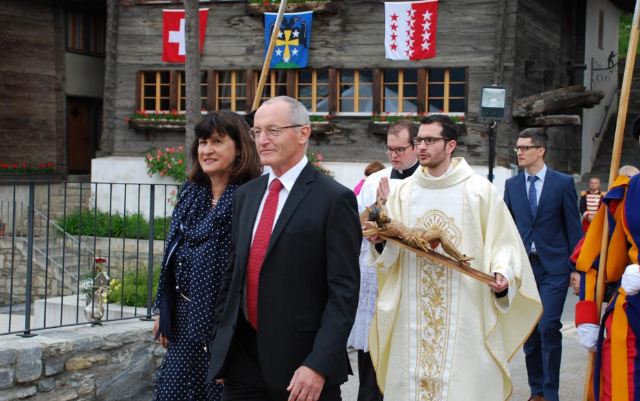 Jungpriester Benjamin Schmid in Begleitung von zwei Gardisten. Einer seiner Brüder leistet aktuell in der Garde Dienst. Freudige Eltern: Lydia und Franz Schmid gehen ihrem Sohn Benjamin zur Kirche voran. Ernsthaft. Benjamin Schmid auf dem Weg zu seiner ersten Heiligen Messe. Priesterlicher Segen für die 97jährige Grossmutter Anna Schmid. Im Kreise der Familie. Jungpriester Benjamin Schmid hat fünf Geschwister. Benjamin Schmid nach der Priesterweihe vom Samstag in Chur durch Bischof Vitus Huonder. Kirche | Primiz in Ausserberg 8J. 0 7 Jungpriester Benjamin Schmid las seine erste Heilige Messe 1815.ch | Am Morgen des Dreifaltigkeitssonntags las Benjamin Schmid in seiner Heimatpfarrei Ausserberg die [...]