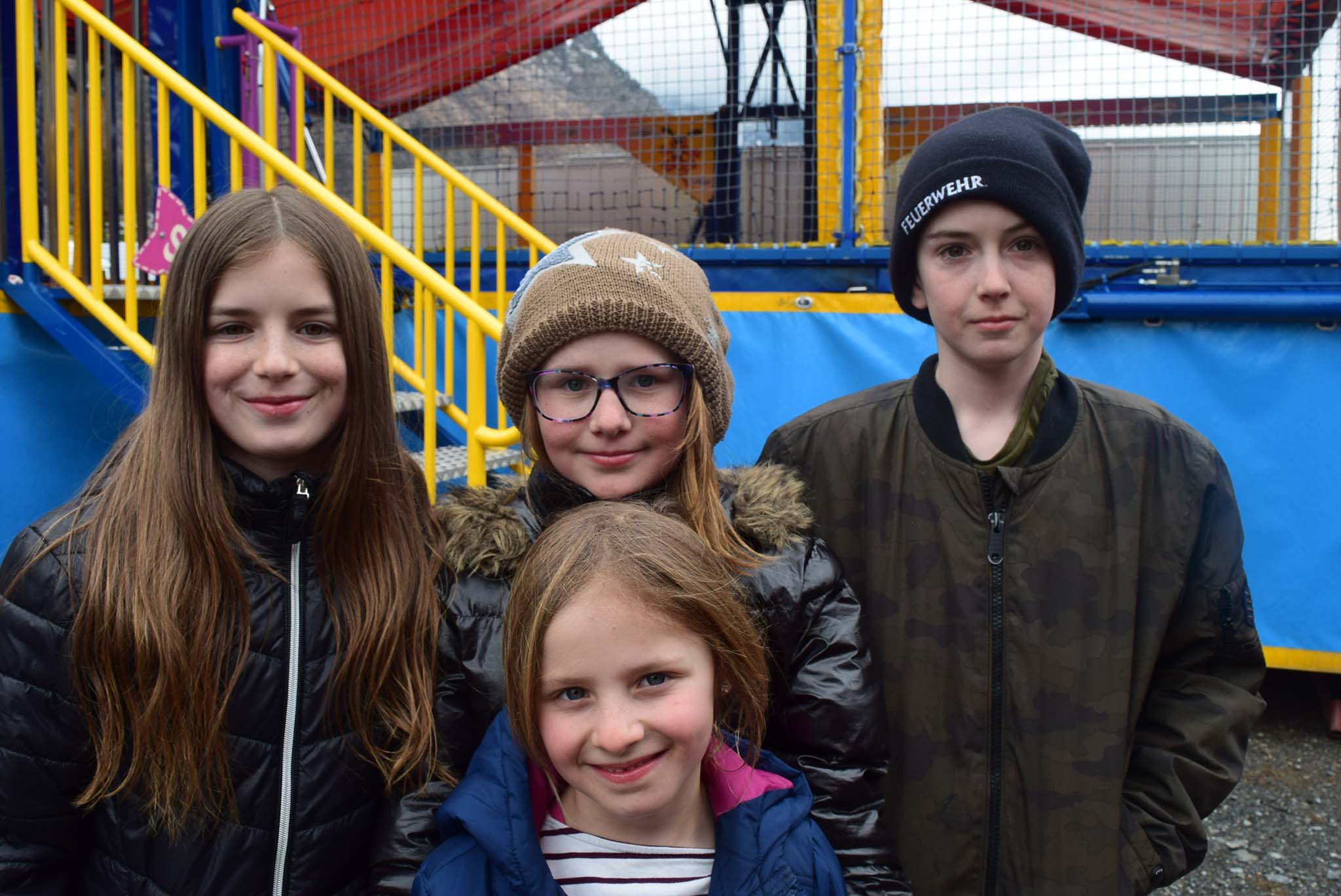 Anina Fux (11), Mia Hofmann (11), Benjamin Fux (13) und vorne Alina Hofmann (7), alle aus Baltschieder.