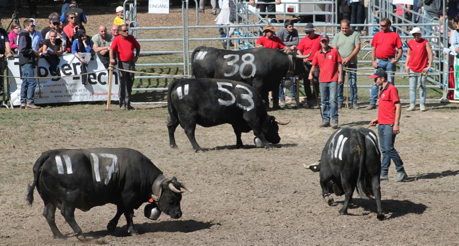 Auf Siegerrunde nach den Finalkämpfen bei den schwersten Kühen.