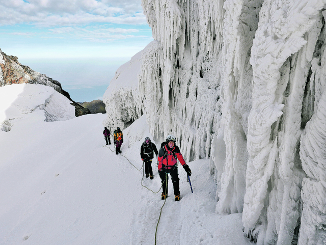 Vielfalt. Auf dem Weg zum Gipfel durchsteigen die Berggänger sämtliche Klimastufen – vom Dschungel bis zum Permafrost. In afrikanischem Eis. Die Schmelze geht auch hier rasend schnell vorwärts. Besonderes Erlebnis. Diego Wellig auf dem Ruwenzori-Gipfel – und ein Blick von oben zurück ins Tal mit einem der Hüttenlager. In Gummistiefeln. Hier erinnert noch nichts an das eigentliche Ziel. Berge | Seven-Summit-Bezwinger Diego... 8J. 0 6 Vom tiefen Dschungel ins ewige Eis Walliser Bote | NATERS |Diego Wellig gehört seit über 30 Jahren zu den besten seines Fachs. Als eine seiner [...]