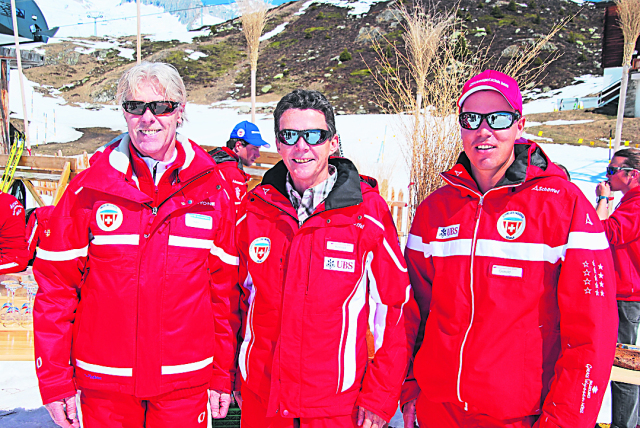 Besuch von ganz oben. Von links: Karl Eggen, Präsident Swiss Snowsports, mit Konrad Salzmann, Präsident Schneesportschule Belalp, und Gerold Berchtold, Leiter Schneesportschule Belalp.