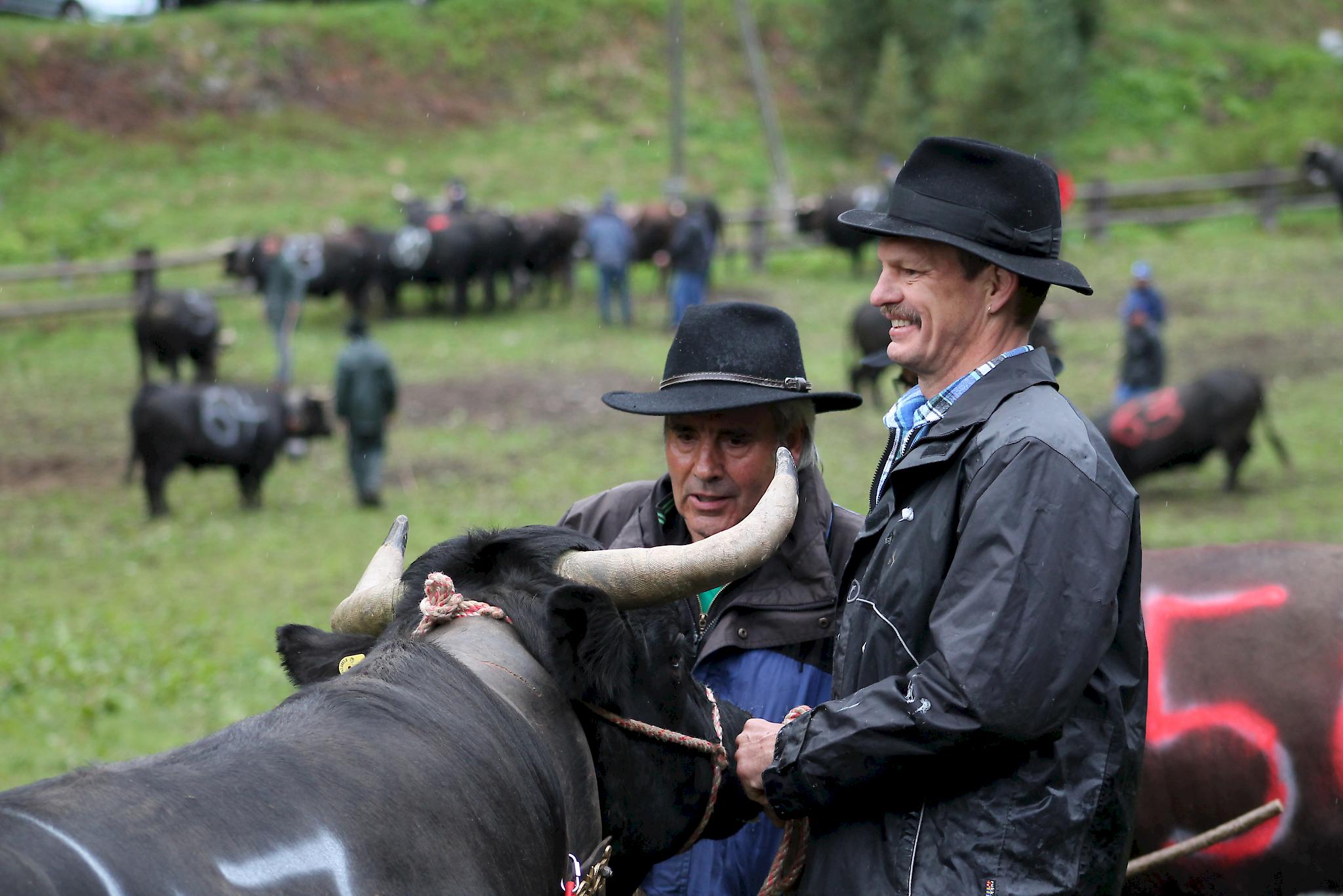 Vor dem grossen Ringkuhkampf tauscht man sich aus.