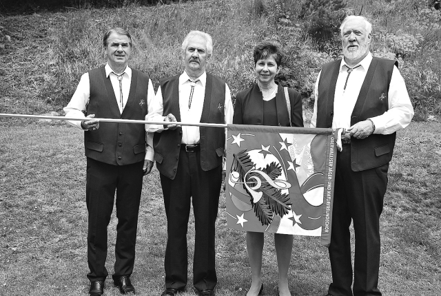 Neue Standarte. Pate Philipp Schnyder, Standartenträger Lothar Ambord, Patin Erika Schwestermann-Imboden und Präsident Marcel Kummer (von links).