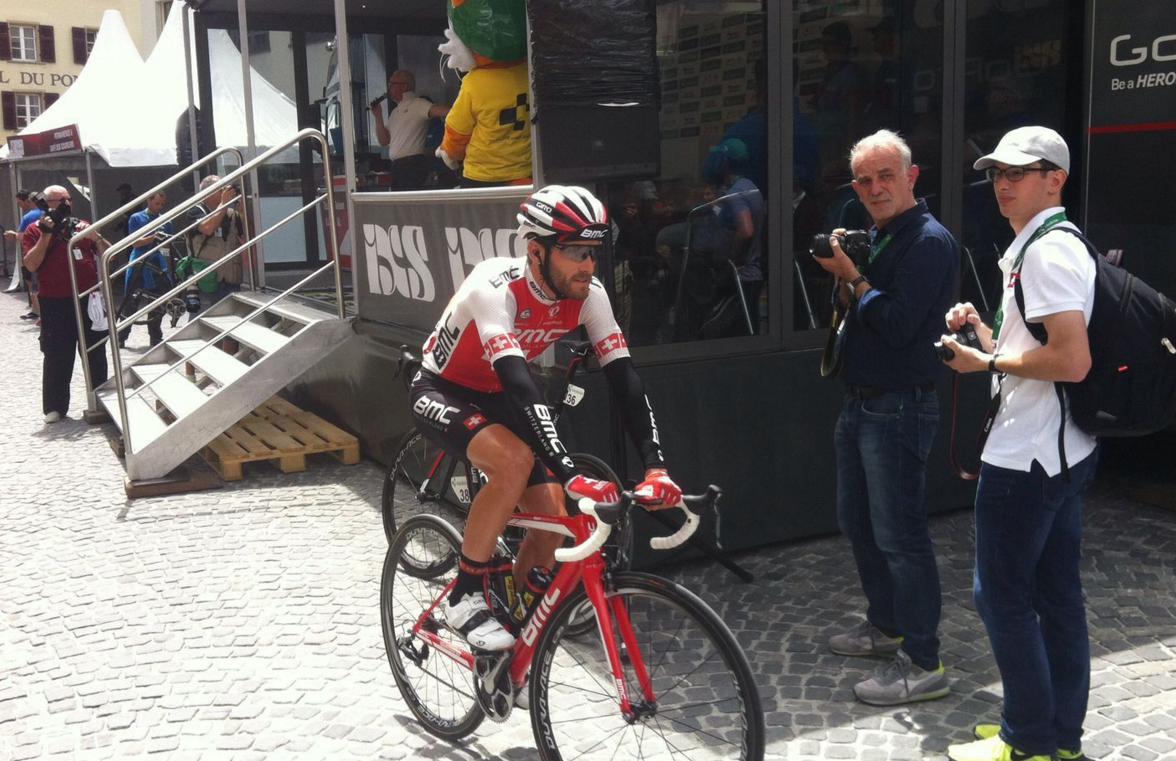 Vorbereitungen zum Start der Tour-de-Suisse-Etappe am Mittwochnachmittag in Brig