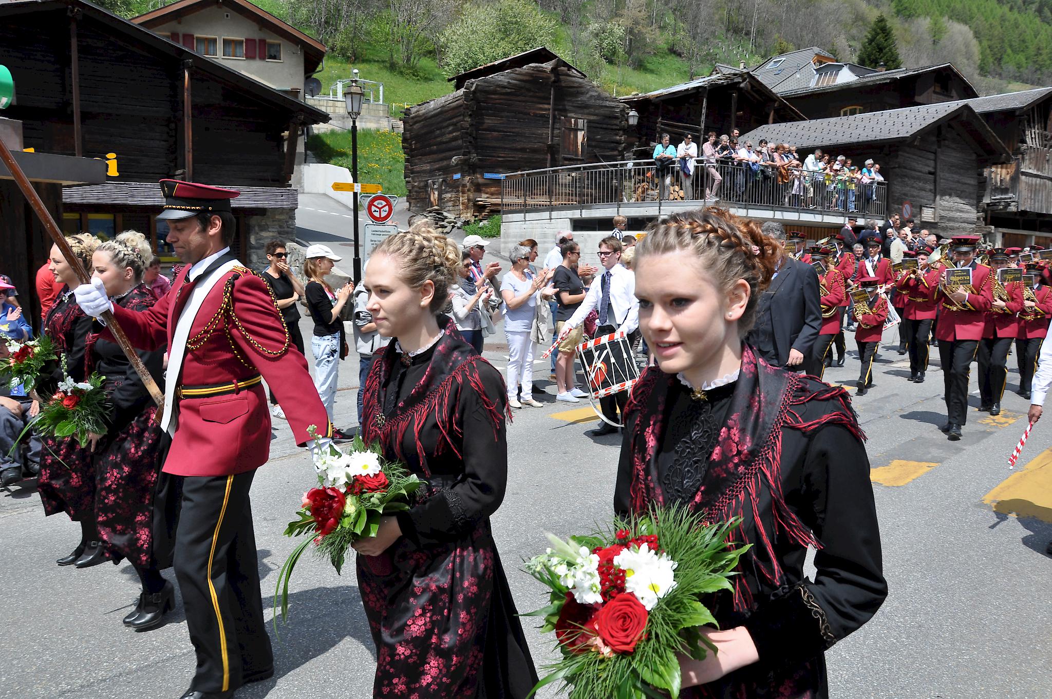 Schöner Farbtupfer. Ehrendamen (im Bild die «Ronalp», Bürchen) durften natürlich nicht fehlen. Guter Gastgeber. Die «Alpenrose», Kippel, marschierte als letzte Formation ein. Blasmusik | 79. Bezirksmusikfest Westlich... 10J. 0 3 «Alpenrose» voll aufgeblüht Walliser Bote | Kippel. Zahlreiche Formationen aus dem Bezirk Westlich Raron verwandelten das Bergdorf Wiler am [...]