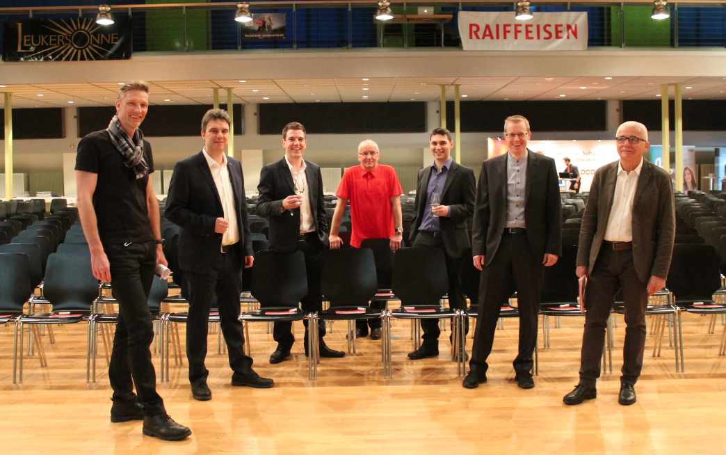Der OCOM-Event in der Briger Simplonhalle ist wiederum gut besucht. Von links: Bernhard Rieder, OCOM AG; Nicolas Mengis, VR-Präsident Mengis Gruppe; Janick Mischler, Projektleiter Swiss Post; Ignaz Andres, OCOM AG; Andrea Marrazzo, Projektleiter Swiss Post; Karlheinz Fux, Vorsitzender der Bankleitung der Raiffeisenbank Mischabel-Matterhorn und Beat Ruppen, Geschäftsführer UNESCO-Welterbe SwissAlps Jungfrau-Aletsch. Karlheinz Fux, Vorsitzender der Bankleitung der Raiffeisenbank Mischabel-Matterhorn, spricht in seinem Referat über digitale Kundennähe. Nicolas Mengis, VR-Präsident Mengis Gruppe, präsentiert die neue Digitaldruckmaschine. Beat Ruppen, Geschäftsführer UNESCO-Welterbe SwissAlps Jungfrau Aletsch, stellt das World Nature Forum in Naters vor. Andrea Marrazzo und Janick Mischler, beide Projektleiter Swiss Post, widmen sich der Drohne und ihrem Nutzen für den Bergkanton Wallis. Ignaz Andres und Bernhard Rieder von der OCOM AG. Judith Zenhäusern-Glenz und Damian Seewer von der Kellerei Leukersonne. Informationstechnologie | Interessante Referate zum... 10J. 0 9 OCOM-Event stellt zunehmende Digitalisierung in den Mittelpunkt 1815.ch | Die OCOM AG hat am Donnerstagabend zu ihrem traditionellen OCOM-Event eingeladen. Zahlreiche [...]