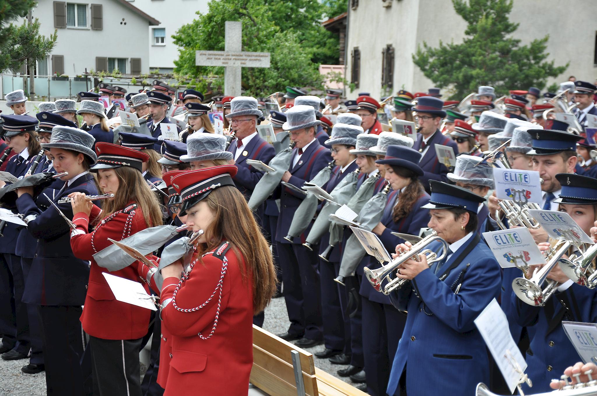 Ehrendamen und Fenner nehmen Formation ein. OK-Präsident Matthias Heinzen spricht zu den Musikanten. Gesamtspiel auf dem Kirchplatz. Gesamtspiel auf dem Kirchplatz. Tradition: die Fahnenübergabe. Die "Konkordia" Varen marschiert zum Festzelt. Ebenso am Umzug: die "Elite" Niedergampel... ...die "Enzian" Erschmatt... ...und die "Illhorn" Susten. Musik | Musikgesellschaft «Lonza»... 7J. 0 10 In Gampel herrscht "Bock uf Müsig" 1815.ch | Nebst den Bezirken Visp und Brig-Glis richtete am Samstag auch der Zehnden Leuk das [...]