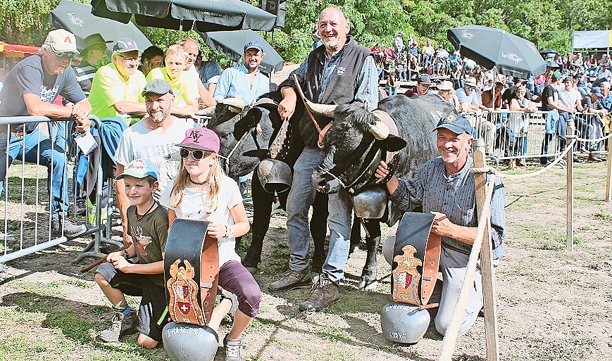 Rinder. Gilbert, Werner und Helmut Furrer mit Kindern Lucio und Weyra mit «Tigresse» (1.) und «Taiga» (5.). Kategorie 2. Von links: Marianne Wüthrich und Sabine Kobel mit «Caba»; Sandrine und Toni Williner mit «Bagheera»; Dulli und Patrick Dillon mit «Mandoline». Erstmelken. Horst Wyssen mit Christian Hildbrand, Urban und Cindy Schnydrig (von rechts) mit «Dolly». Kategorie 3. Rosmarie Heldner und Marcel Zuber mit «Liona». Auf Biegen und Brechen. «Marissa» (links) und «Surprise» lassen sich im Kampf nicht von Abschrankungen aufhalten. Ringkuhkampf | Neue Stechfestsaison im... 7J. 0 6 Triumph für Turtmänner «Tokyo» Walliser Bote | RARON | Rund 170 Tiere haben am Sonntag in der Goler-Arena in Raron die neue Ringkuhkampfsaison [...]
