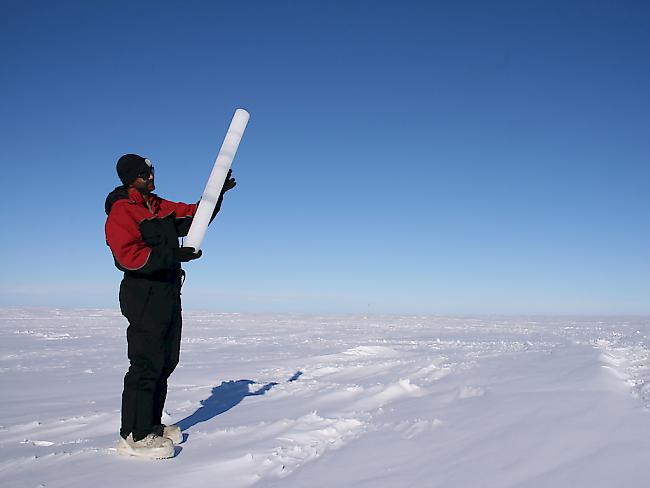 Eisbohrkerne wie dieser aus der Ostantarktis liefern wichtige Hinweise auf vergangene Klimaentwicklungen, ebenso wie Baumringe und Seesedimente. Solche Daten sind nun gebündelt in einer umfassenden Datenbank. (Archiv)