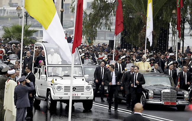 Nach der Ankunft in Rabat stand der übliche Höflichkeitsbesuch beim Gastgeber König Mohammed VI. auf dem Programm. Später am Nachmittag besuchte der Papst eine Imam-Schule und traf schliesslich sechzig Migranten. Vor seiner Abreise am Sonntagnachmittag feiert der Pontifex eine Messe, zu der zwischen 7000 und 10'000 Gläubige erwartet werden.
