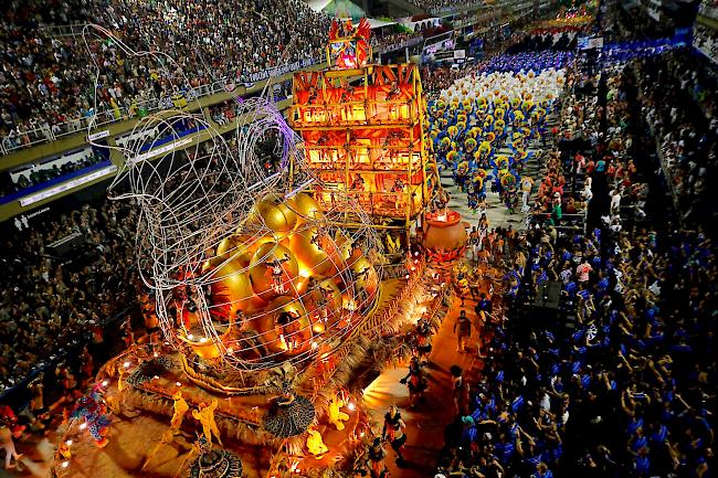 Glitzernde Kostüme, prächtige Wagen, ewiges Strahlen: Eine Schau der sechs besten Sambaschulen 2019 läutete in Brasiliens Metropole Rio de Janeiro das Ende des Karnevals ein. Als erste der Schulen zog Mocidade am Samstagabend (Ortszeit) in die Paradenstrasse Sambódromo in der Innenstadt ein. Der Veranstalter Rio Carnaval hatte zuvor auf seiner Webseite gemeldet, alle Eintrittskarten seien ausverkauft. Auf den Zuschauertribünen haben etwa 70'000 Menschen Platz.
