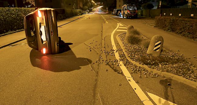 Auf der Seite gelandet und dort stehen geblieben ist ein Auto am Dienstagabend in Ebikon. Der angetrunkene Lenker hatte sein Fahrzeug zuvor in einen Betonpoller gesteuert. Der 60-Jährige wurde leicht verletzt und mit der Ambulanz ins Spital gebracht.