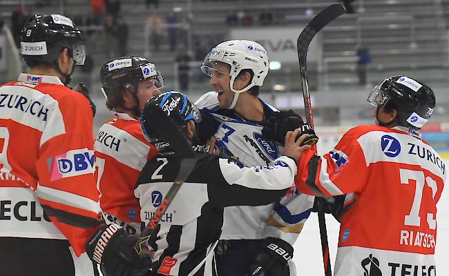 La-Chaux-de-Fonds-Söldner Brett Cameron wird von den Vispern «bearbeitet», Oberwalliser Sieg im ersten Ernstkampf.