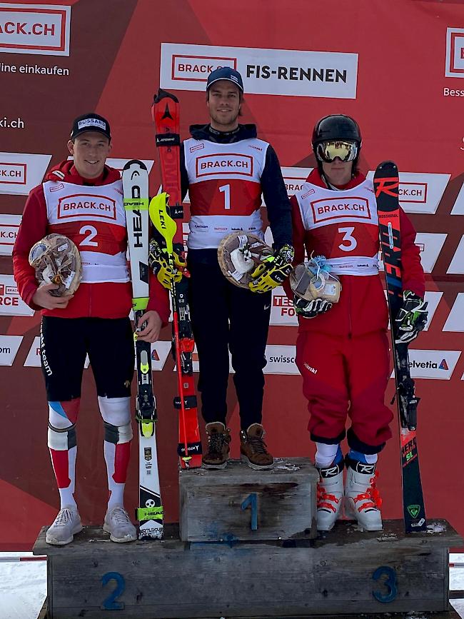 Dionys Kippel siegt beim FIS-Slalom in Gstaad vor Matthias Iten und Livio Simonet.