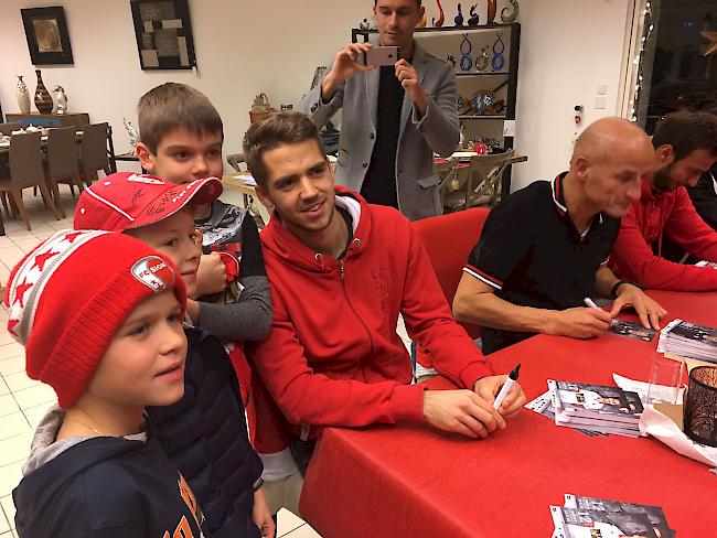 Neben Trainer Zeidler reihten sich Vero Salatic, Theofanis Gekas, Arthur Boka, Elsad Zverotic und Grégory Karlen des FC Sitten an einen Tisch um die Oberwalliser Fans glücklich zu machen. Diese liessen es sich nicht nehmen und erschienen zahlreich.