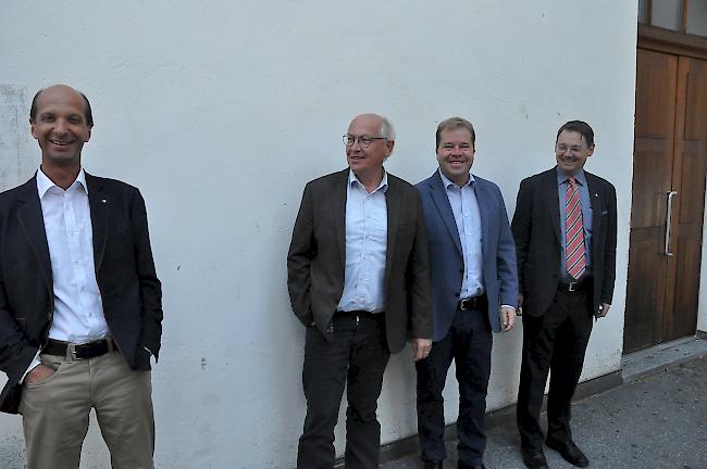 Leichter Vorsprung? Beat Rieder (links) will den 2. CVP-Ständeratssitz verteidigen. Seine Konkurrenten sind ihm (hier nach dem politischen Spektrum von links nach rechts stehend) auf den Fersen: Thomas Burgener (SP), Pierre-Alain Grichting (FDP), Franz Ruppen (SVP).