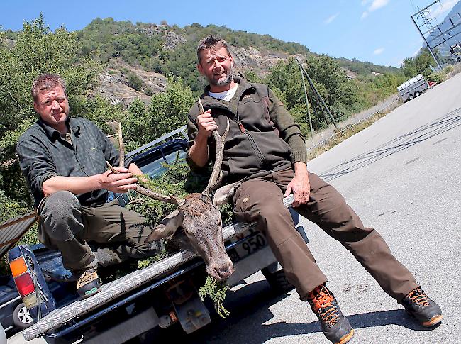 Nicht minder erfolgreich gestaltet sich die laufende Jagd für eine fünfköpfige Jagdgruppe von Franziskus Truffer und Renato Schnydrig, welche dem Wild auf der Bryscheralp oberhalb von Mund nachstellt. «Eine Woche lang musste ich warten und mich in Geduld üben, ehe ich am Montagmorgen einen Hirsch erlegen konnte», erklärt der Schütze Franziskus Truffer. Neben dem Hirsch konnte die Gruppe bis anhin allerdings bereits drei Gämsen und drei Rehe erlegen. «Für die Jagd wäre es gut, wenn die Temperaturen ein wenig kühler wären, damit die Brunft anzieht und mehr Bewegung in die Hirschbestände kommt. Bei diesen sommerlichen Temperaturen hat man lediglich früh morgens oder in der Abenddämmerung die Chance auf einen Abschuss.»