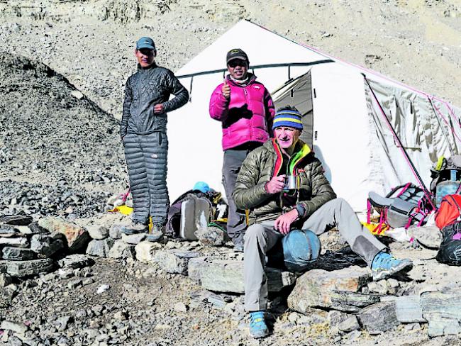 Tscherrig führt seine Gäste von der tibetischen Seite her zum Gipfel. Die Nordroute gilt objektiv als sicherer als jene in Nepal. «Wir befinden uns derzeit im sogenannten ABC-Lager auf 6400 Meter über Meer. Am Mittwoch steigen wir ins Nordcol auf 7000 Meter hoch, tags darauf ins Lager 2 auf 7900 Meter. Am Freitag wartet der Aufstieg ins Lager 3 auf 8300 Meter.» Von dort aus wollen die Alpinisten in Begleitung dreier Sherpas am Samstag aufs Dach der Welt schreiten.