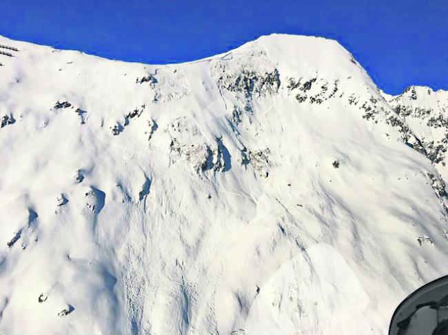Das Hofathorn. Der tödliche Unfall ereignete sich in der Lawine rechts. Die Schneemassen links davon lösten sich bei der Abfahrt der Kollegen zum Standort des Verschütteten.
