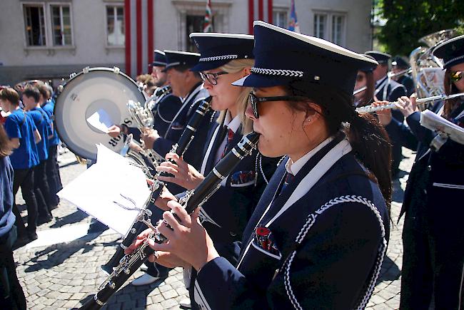 Zahlreiche Musikanten, Ehrendamen und Fähnriche aus 16 Musikgesellschaften haben heute am Bezirksmusikfest in Visp teilgenommen.