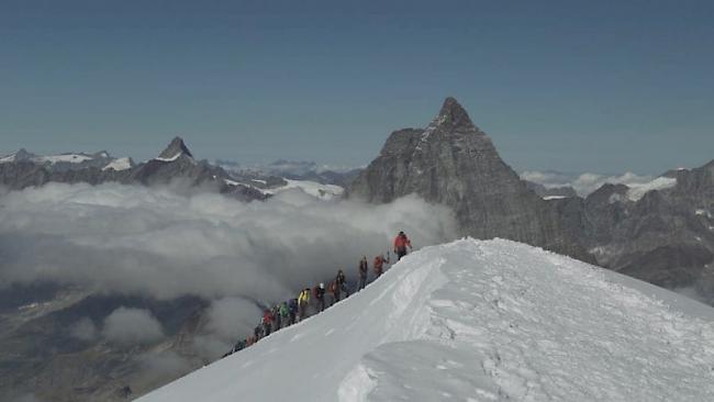 Am Samstag haben 80 an Brustkrebs erkrankte Frauen aus ganz Europa das Breithorn (4164 m ü. M.) bei Zermatt bestiegen. Begleitet wurden sie von 24 Bergführern aus Zermatt.
