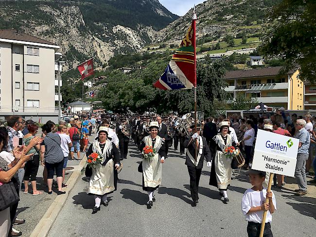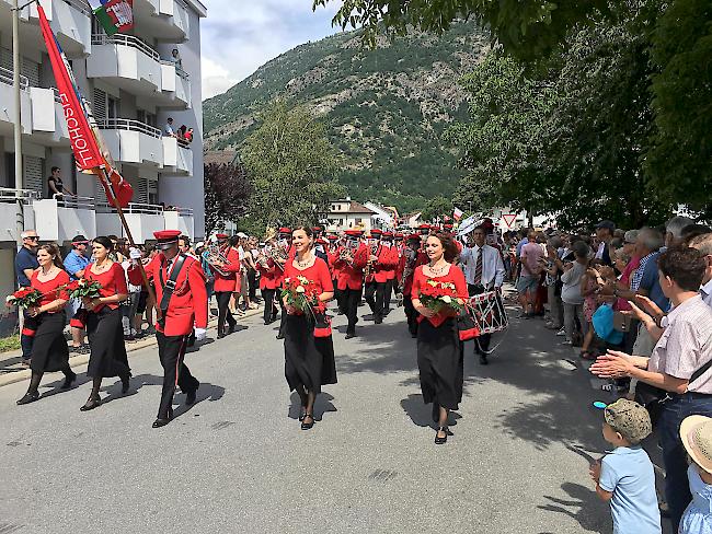 Festumzug. Ab 11 Uhr marschierten die Musikgesellschaften in Richtung Festgelände. Hier die MG «Echo der Bergler» aus Eischoll.
