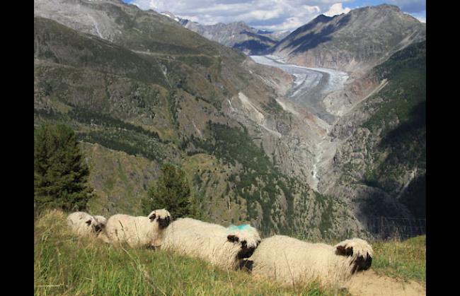 Die rund 800 Schafe hatten einen sieben- bis achtstündigen Marsch durch die Oberaletsch-Schlucht und die Steigle hinauf aufs Alpji hinter sich.