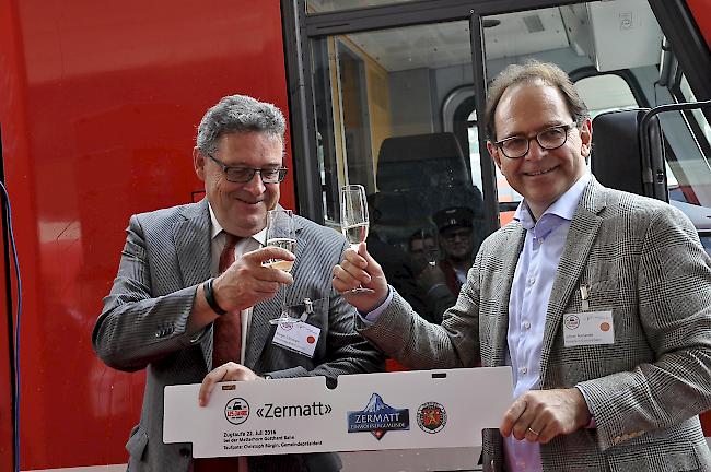 Taufe erfolgreich vollbracht: Zermatts Präsident Bürgin mit MGB-Chef Lehner.