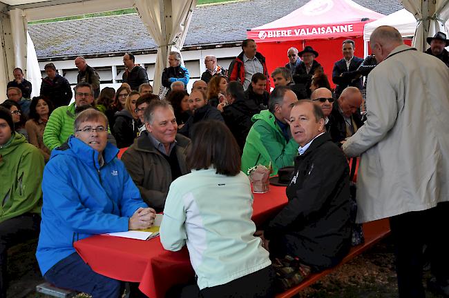Zahlreiche Politiker und Prominente sowie die Macher der Jubiläums-Projekte bei der heutigen Abschlussfeier auf der Alpe Col du Lein.