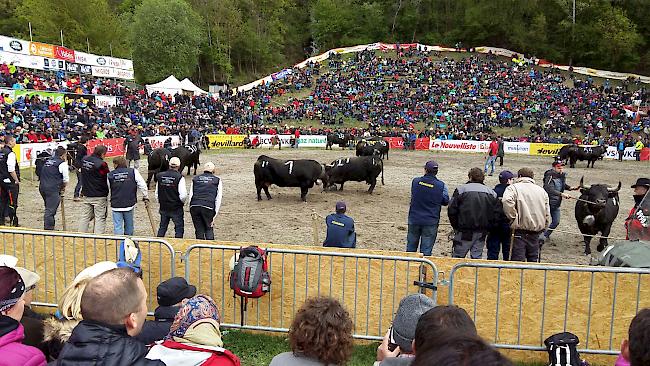Der kühlen Temperaturen wegen, besuchten weit weniger Zuschauer als erwartet den Grossanlass in Aproz. Geschätzte 10'000 Ringkuhkampffreunde verfolgten die Kämpfe von den Tribünen rund um die Arena aus.