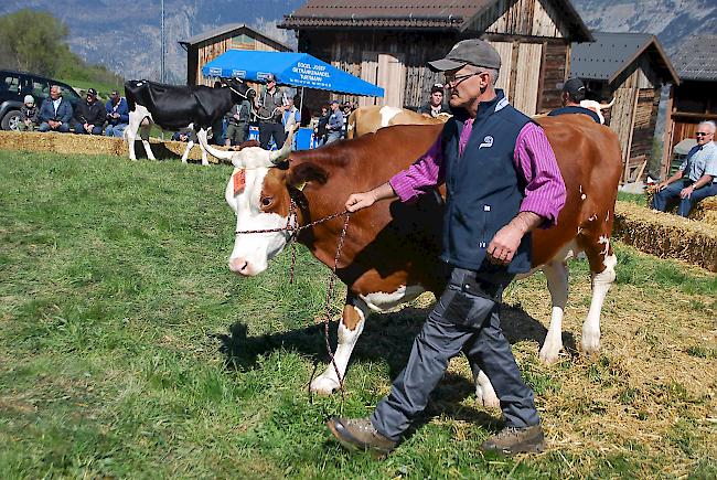 Zwischen 7.00 und 9.00 Uhr in der Früh fuhren die Viehzüchter aus den Schattenbergen ihre Tiere auf. Zwölf Betriebe waren in diesem Jahr mit dabei: aus Unterbäch die Betriebsgemeinschaft Berni-Zenhäusern, sowie die Ställe von Basil Fux, Manuela Ruffiner-Fux, Carmen und Nicolas Lötscher und Gilbert Zenhäusern; aus Oberems Markus und Heike Hischier, sowie Hubert Hischier; Odilo Tscherrig aus Unterems; Vinzenz Zenhäusern und Hermann Zumoberhaus aus Bürchen und Armin Eggs aus Ergisch.