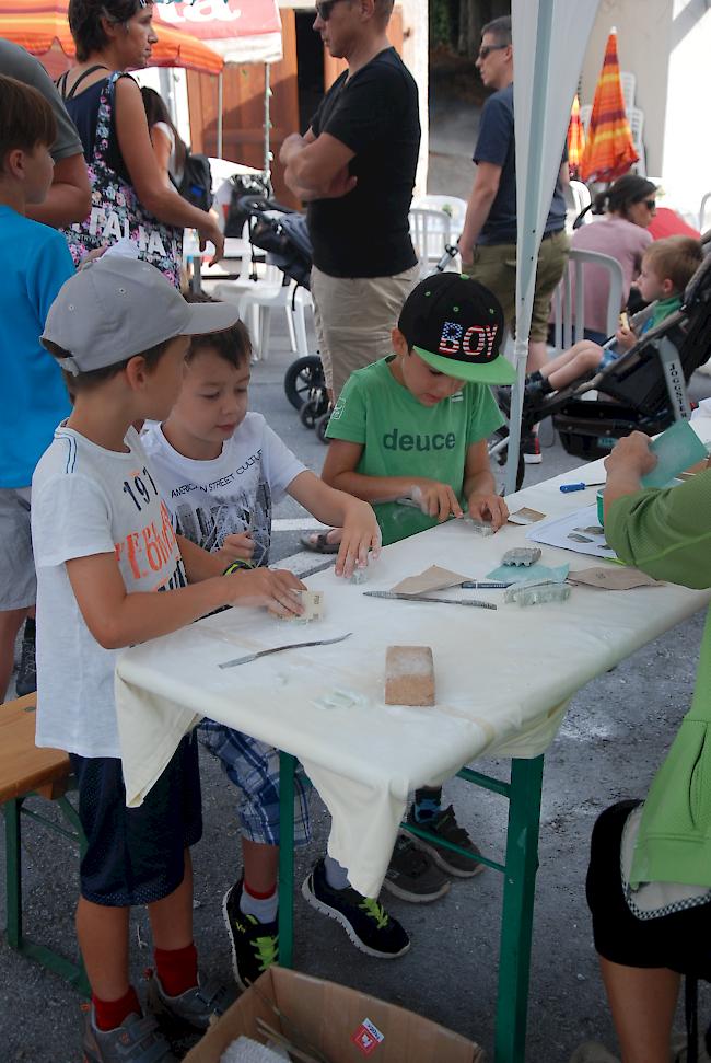 Seit heute Morgen sind die Kinder eifrig am Werk. Sie basteln Glücksbringer aus Speckstein, erstellen mit Hilfe von Holunder Freundschaftsbändchen oder lauschen in einer wie ein Wald eingerichteten Scheune gebannt den Geschichten einer Fee. Besonders begehrt ist der Schminkposten, der die Mädchen in Naturprinzessinnen verwandelt.