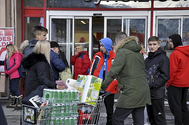 Im Eyholz Center hat sich am Samstagvormittag nicht ganz Alltägliches abgespielt: Gleich 1500 kroatische Wintersportler deckten sich für ihre Ferien in Nendaz/Veysonnaz mit Essen und Getränken ein.