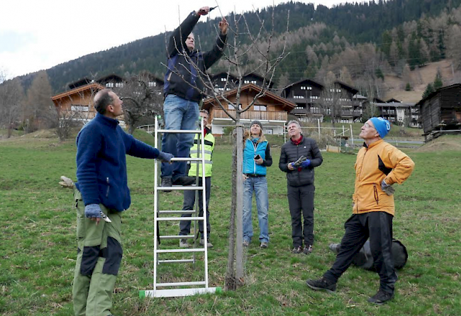 Beim diesjährigen Hands-On-Projekt des Rotary Clubs Brig ging es darum, die 2011 gepflanzten Bäume zu pflegen. Unter der Anleitung des Baumschulisten Werner Kradolfer lernten die Rotarierinnen und Rotarier, wie man die Bäume richtig schneidet. Danach legten sie selbst Hand an. «Es ist schön zu sehen, wie sich die jungen Bäume entwickelt haben», freut sich der Leiter des Hands-On-Teams, Diego Schmidhalter. Die Rotarier düngten die Bäume auch mit Mist und impften den Boden rund um die Bäume mit einem Pilz gegen Engerlinge.