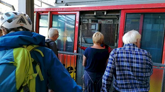 Alle einsteigen bitte: Am Sonntag beförderte die Grosskabinenbahn zum letzten Mal Passagiere.