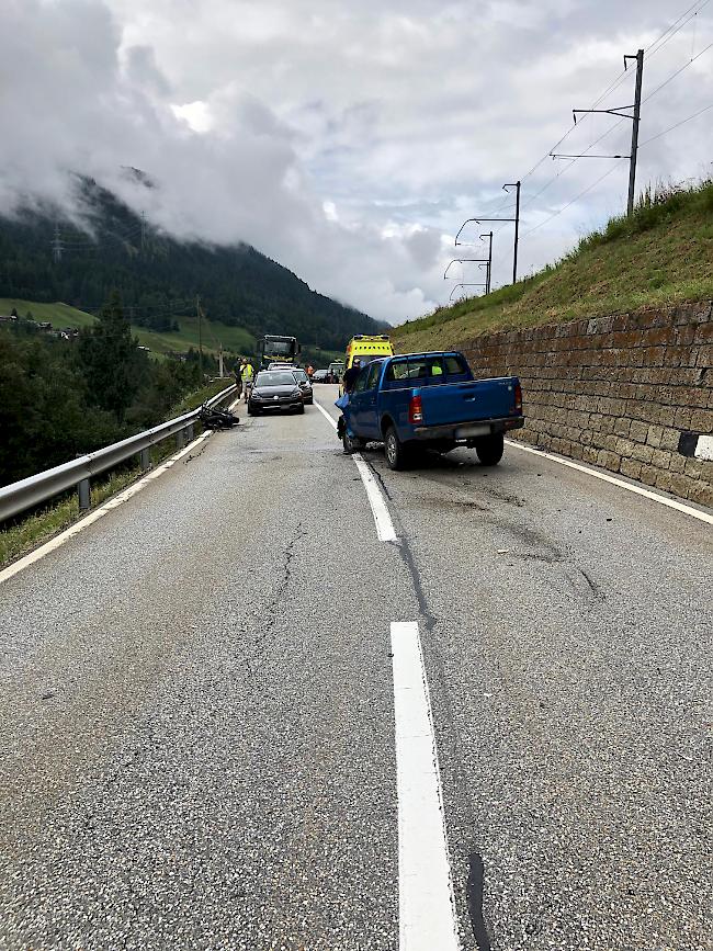 Am Dienstagvormittag kam es zwischen Fürgangen und Niederwald zu einer Frontalkollision zwischen einem Motorrad und einem Personenwagen.