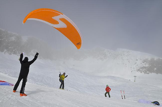 Bei prächtigem Wetter fand am Samstagmorgen der erste von vier Läufen des Gleitschirmwettkampfs auf der Belalp statt. Dieser von Raoul Geiger organisierte Event wurde erstmals an diesem Ort durchgeführt. 30 Piloten peilten die Tore im Schnee an und segelten in Richtung Ziel.
