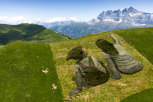 Der Künstler malte das Bild auf einem grasbewachsenen Hang in Les Crosets auf 1970 Metern Höhe, unweit der Grenze zu Frankreich. Das riesige Fresko ist 2500 Quadratmeter gross, das entspricht etwa einem Drittel eines mittleren Fussballfelds.