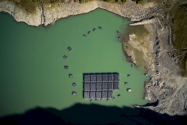Das Westschweizer Energieunternehmen hat am Mittwoch mit der Installation der Testanlage beim Stausee Lac des Toules in der Gemeinde Bourg-St-Pierre im Val d'Entremont begonnen, der sich auf 1810 Metern über Meer befindet. Der Stausee in den Walliser Alpen eignet sich laut Romandie Energie unter anderem deshalb gut für das Pilotprojekt, weil der See nach Süden ausgerichtet ist.