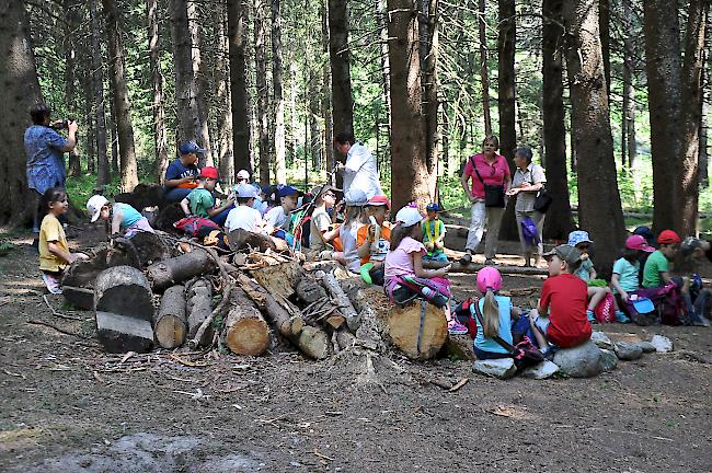 «Spielsachen von zu Hause müsst ihr hier nicht mitnehmen, im Wald hat es davon genug», richtete sich der zuständige Gemeinderat Bruno Lochmatter an die Kinder. Ziel des Unterrichts im Freien ist, dass sich die Kleinen mit der Natur auseinandersetzen und biologische Vorgänge kennenlernen.