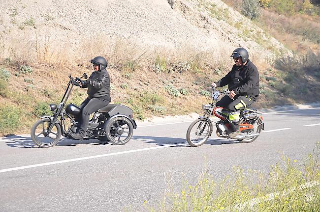 Erwachsene Männer auf einem "14er-Töffli" sind gemeinhin ein etwas seltsamer Anblick. Nicht so am Samstag: Im Rahmen der "Intrundi"-Rundfahrt durchs Oberwallis tuckern rund 200 "Töfflibuebe" mit Tempo 30 durch den oberen Kantonsteil.