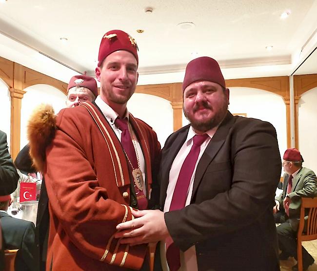 Stabsübergabe. Der neue Grossvezier des Briger Türkenbundes heisst Patrick Hischier (links). Er tritt die Nachfolge von Thomas Bregy an.