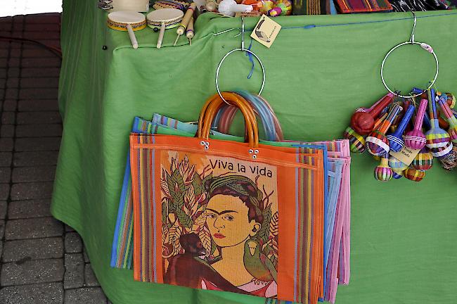 Es lebe das Leben: Aufschrift auf Tasche am Verkaufsstand.