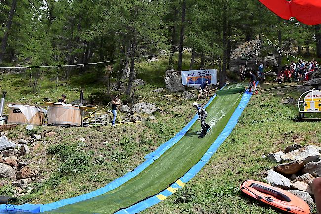 Jubiläumsausgabe des Waterslide Contest in Simplon Dorf.
