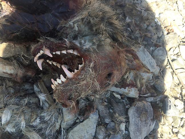 Abgeknallt. Der Kadaver des niedergestreckten Wolfes bei Raron vom 7. März.