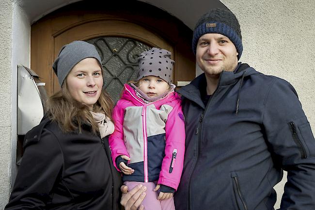 Michaela (29), Emilia (3) und Tobias (32) Hauswirth, Mörel-Filet.