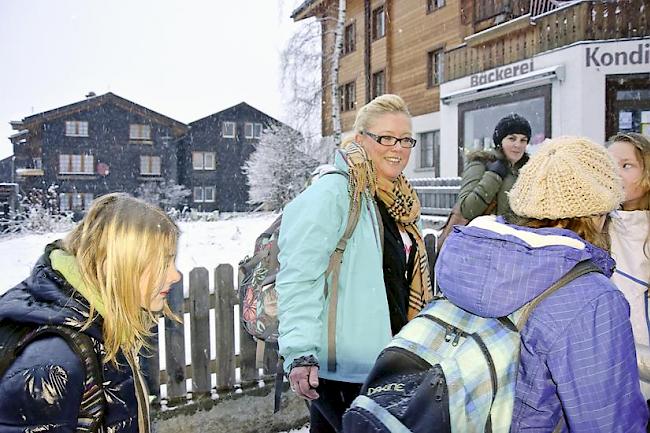 Ein verschneiter Dienstagmorgen um 7.50 Uhr. Auf dem Bahnhof Randa treffen die ersten Kinder ein, die nach Täsch in die Schule gehen. Mittendrin eine grosse blonde Frau. Die 43-jährige Nathalie Munsters, gebürtige Holländerin, beobachtet das Treiben der Schulkinder ganz genau, hält die Gruppe von 13 Kindern zusammen und wirft immer wieder einen Blick zu den Gleisen. «Auf das Perron gehen wir erst, wenn der Zug nach Täsch eingefahren ist», erklärt sie. «Sonst wäre es zu gefährlich.» Dann ist es soweit, der Zug der MGBahn fährt in Randa ein und Nathalie Munsters treibt die Kinder zur Eile an. Ein letzter Blick, ob auch alle Kinder eingestiegen sind und dann setzt sich der Zug auch schon in Bewegung. Dieses Spiel wiederholt sich fast täglich. Fünf Mal die Woche begleitet Nathalie Munsters die Kinder aus Randa morgens nach Täsch. «Ich mache das gerne», sagt sie. «Zwei meiner eigenen Kinder sind mit in der Gruppe, da macht es mir auch nichts aus, wenn es wie heute schneit.» Mühe hätte sie dagegen, wenn die Kinder den Weg alleine auf sich nehmen würden. «An einem Bahnhof ist schnell einmal etwas passiert», erklärt Munsters, «darum ist es sicher besser, wenn ein Erwachsener dabei ist und schaut, dass alles mit rechten Dingen zu und her geht.» Wenig später trifft der Zug in Täsch ein und Munsters schaut, dass auch alle Kinder aussteigen. Dann geht es im Eilschritt durch Täsch zum Schulhaus hinauf. Ein paar Kinder trödeln, Nathalie Munsters kümmert sich darum, dass aufgeschlossen wird. Dann erreicht die Gruppe auch schon das Schulhaus von Täsch. «Job erledigt, Feierabend», freut sich Munsters und lacht. «Jetzt kann ich bei Bedarf noch einkaufen gehen und dann fahre ich zurück nach Täsch.» Wenn es das Wetter zulässt, geht Nathalie Munsters auch mal zu Fuss zurück nach Randa. «Das ist dann mein Fitnessprogramm. Heute verzichte ich aber lieber darauf», sagt sie mit einem Blick in den wolkenverhangenen Himmel.