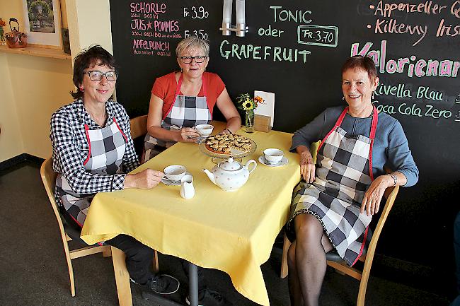 Sue Zimmermann, Stella Stoffel und Penny Kulla (von links) eröffneten in Visperterminen ein Bistro mit britischen Spezialitäten.
