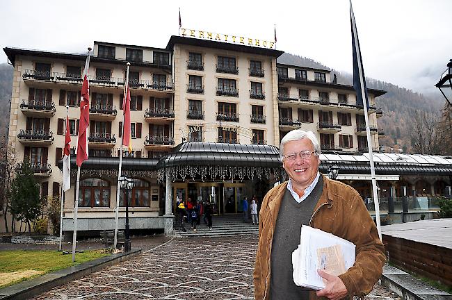 Paul Schmidt vor dem Grand Hotel Zermatterhof, wo er mehr als 40 Jahre lang gearbeitet hat.